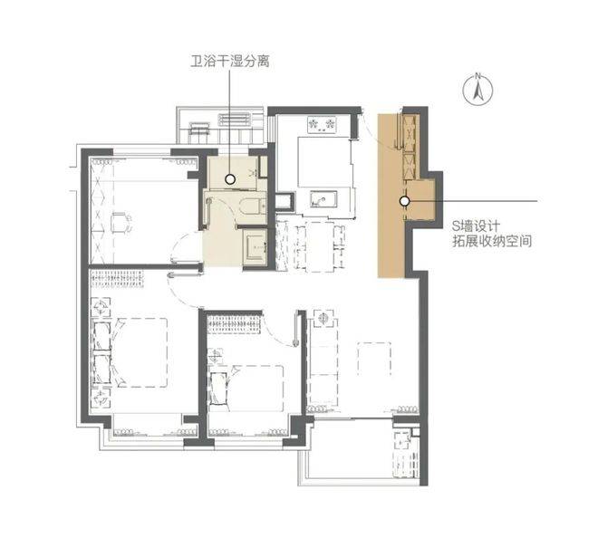生活对空间的需求并非一成不变,而是随着家庭结构和时代的变化不断发展。对此招商时代乐章深度挖掘户型功能的可成长性,努力为上海家庭营造适配全生命周期需要的户型空间。